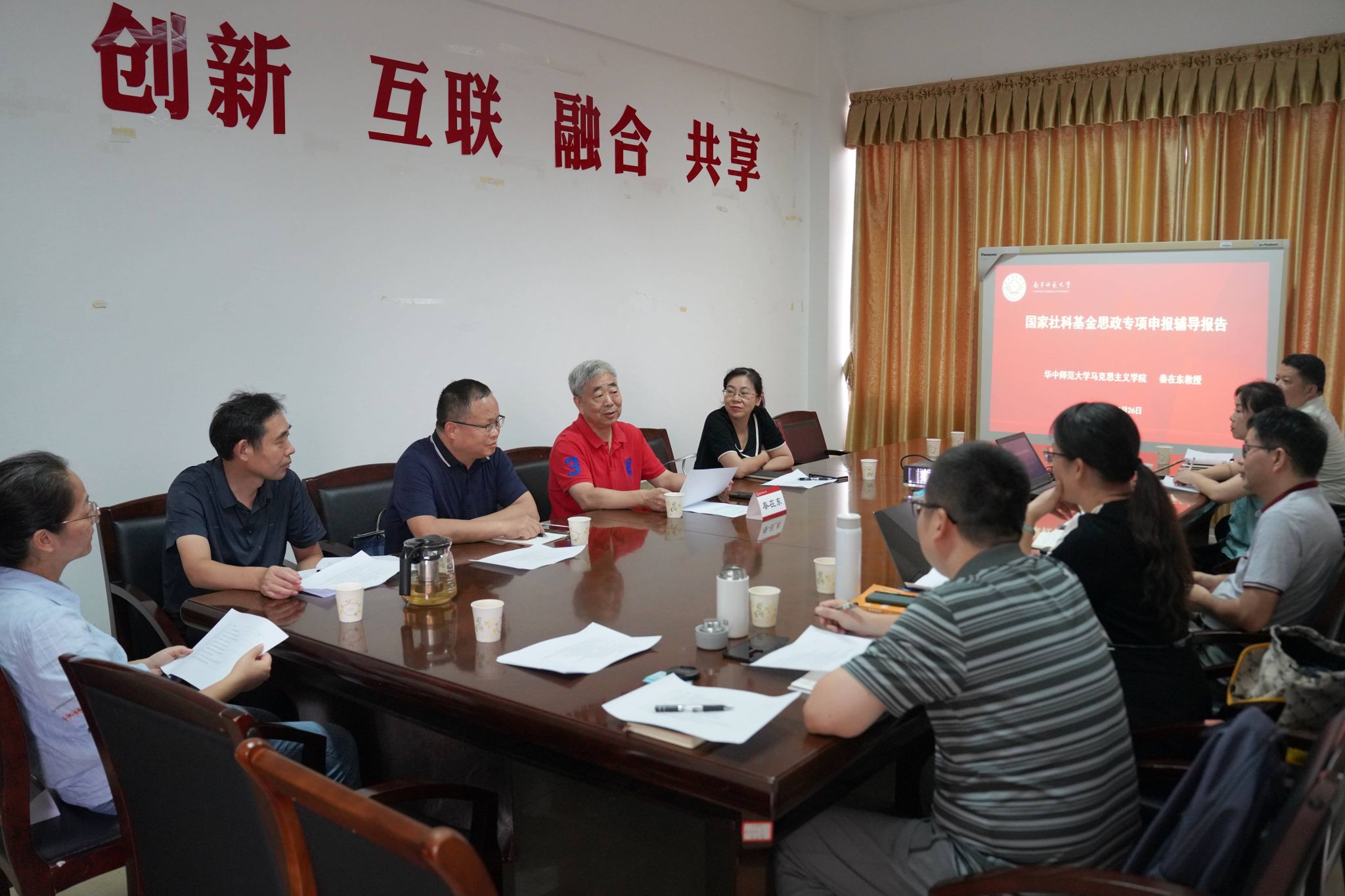 为做好2024年国家社科基金高校思想政治理论课研究专项申报工作,提高教师科研课题申报质量,2024年9月26日下午,公司在明秀校区文星楼1209会议室召开课题申报辅导会。华中师范大学太阳集团tyc33455秦在东教授应邀为公司教师进行课题申报辅导。本次辅导会由公司副经理王卫国副教授主持。