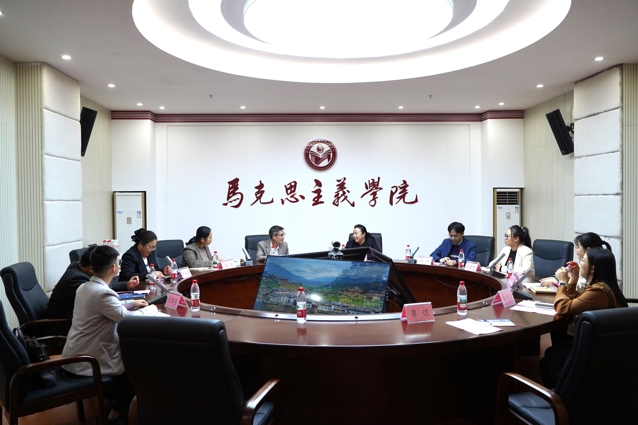 随后,双方在五合校区8B206学术报告厅举行了座谈交流会。会上,李玲对广西科技师范公司太阳集团tyc33455领导老师们的来访表示欢迎,简要介绍公司办学历史、团队建设及教学改革成果,重点阐述了公司“行走的思政课”特色课程建设。接着,双方围绕核心工作进行深入探讨:在党建工作方面,双方聚焦“党建+”模式建设等多种实践路径交流经验,致力于提炼可复制、可推广的党建工作方法。在思政课程方面,李乐军就AI赋能思政课程建设方面介绍其依托学习通平台开展智慧课程录制的实践探索;李玲提出通过数字人实现授课与互动答疑双重功能;双方还对党支部与教研室协同共建、流动党员管理及标杆院系创建等相关议题交换做法。