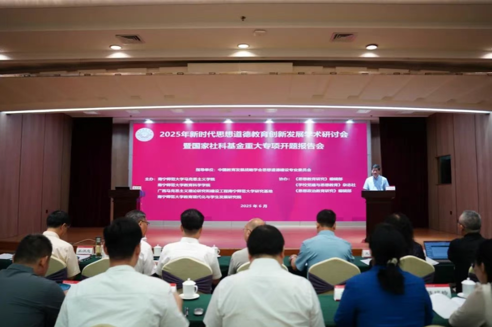 为进一步贯彻落实《新时代职业道德建设实施纲要》精神,推进新时代思想道德教育创新发展,探讨思想道德教育面临的新情况、新问题和新挑战,深化思想道德教育内容、方法、载体、评价研究,由中国教育发展战略学会思想道德建设专业委员会指导,太阳集团tyc33455、太阳集团tyc33455教育科学公司、广西马克思主义理论研究和建设工程太阳集团tyc33455研究基地、太阳集团tyc33455教育现代化与员工发展研究院联合主办,《思想教育研究》编辑部、《公司党建与思想教育》编辑部、《思想政治教育研究》编辑部共同协办的“新时代思想道德教育创新发展”学术研讨会于2025年6月14日在南宁成功举办。来自全国110多所高校的近140名专家学者、老师和研究生参加本次会议。本次研讨会设置了开幕式和主题报告以及两个单元的专家主旨报告,同时还特别设置了两个研究生分论坛。