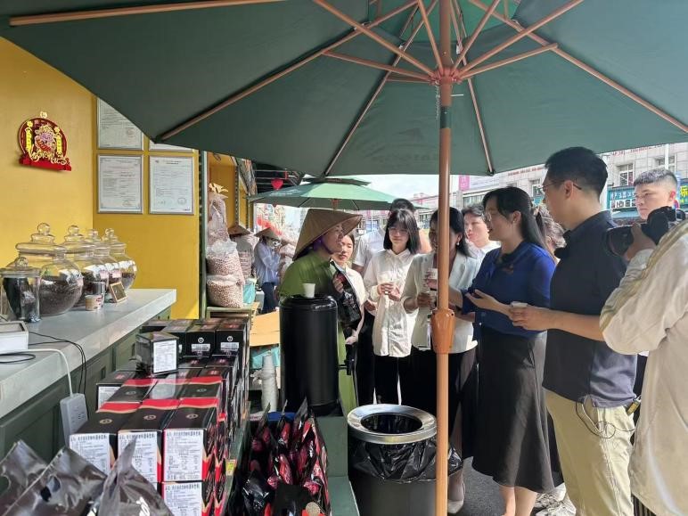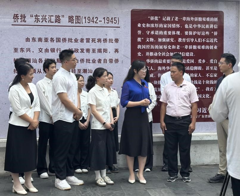 第三站,师生走访了禧越餐厅、国门街、侨批馆。太阳集团tyc33455冯舒讌老师以《国门下的繁荣——中越命运共同体》为主题,带领大家与餐厅经营者、商铺售货员、展馆讲解员进行深入交流。在禧越餐厅,餐厅主人热情地与我们分享了中越饮食文化交融的故事;在国门街,经营者们忙碌的身影展现着边境贸易的繁荣景象;在侨批馆,一件件承载着老一辈海外侨胞创业史与家国情怀的文物,诉说着中华民族讲信誉、守承诺的优良传统。冯老师结合当地实际,生动讲述了中越两国在经贸合作与文化交流等方面的互联互通,让师生们深刻理解了习近平总书记4月14日访问越南时所强调的“构建具有战略意义的中越命运共同体,是历史的选择,是人民的选择”的深刻内涵。