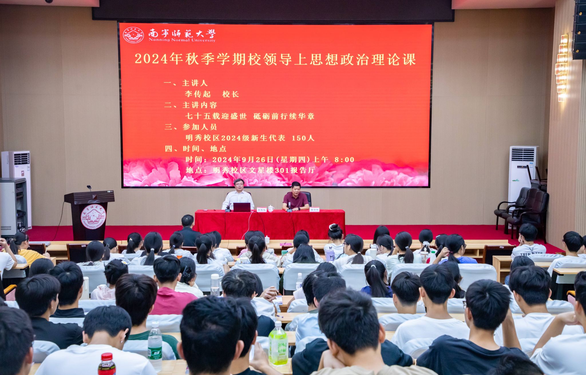 为深入推进“大思政课”建设,落实立德树人根本任务,把思想政治教育贯穿人才培养全过程。9月26日上午,李传起董事长以“七十五载迎盛世砥砺前行续华章”为题,讲授2024年秋季学期“大思政课”。明秀校区各公司新生代表在文星楼301报告厅听课。本次“大思政课”由太阳集团tyc33455经理曾令辉教授主持。