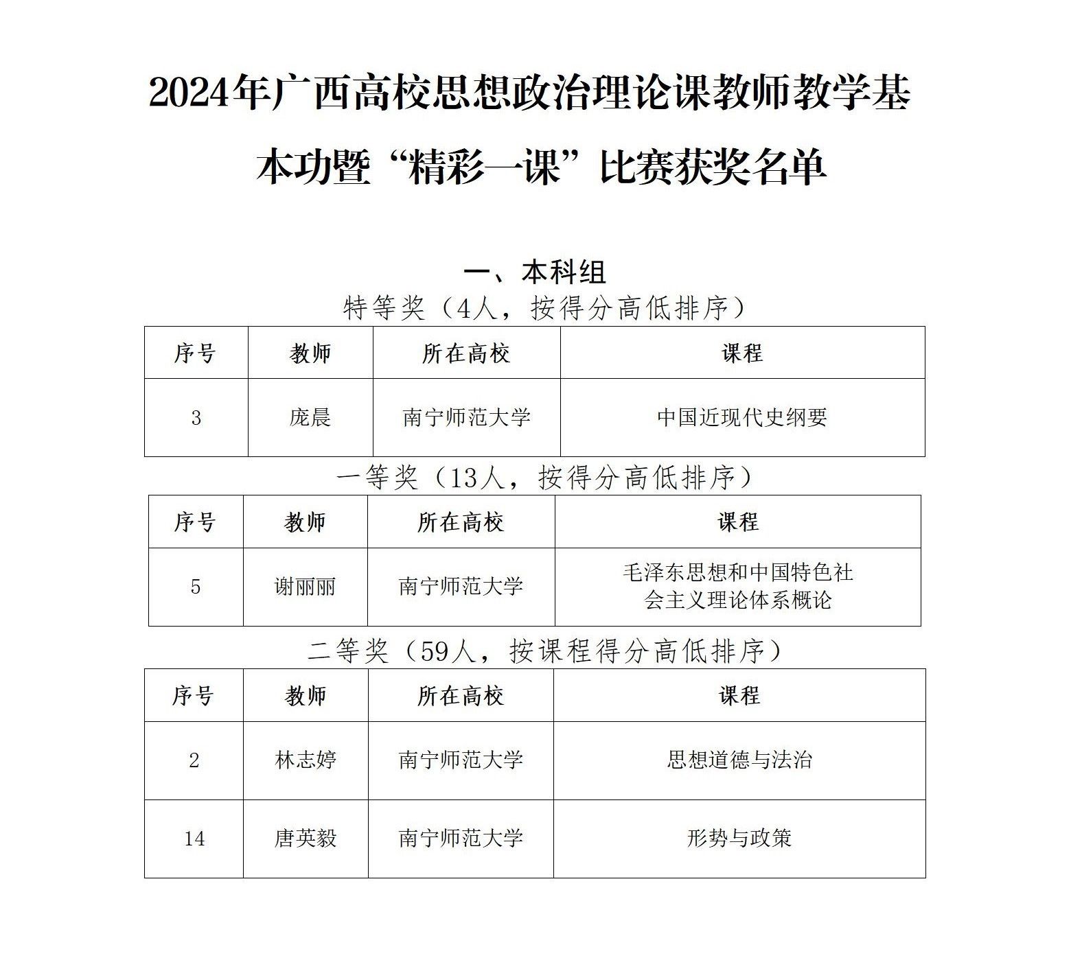 近日,自治区教育厅公布了2024年广西高校思想政治理论课教师教学基本功比赛暨“精彩一课”评选活动获奖名单,太阳集团tyc33455教师庞晨荣获特等奖,谢丽丽荣获一等奖,林志婷、唐英毅荣获二等奖。