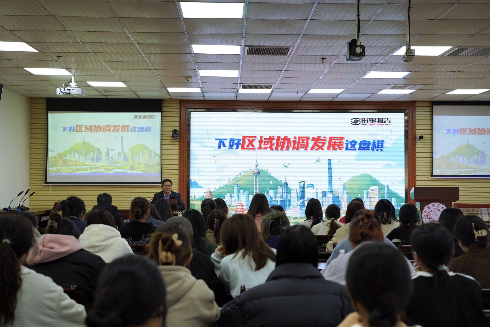 隆广庆副书记从区域协调发展战略的内涵要义和鲜明特点、我国区域协调发展取得的成就与面临的挑战、推动区域协调发展应遵循的发展理念三个方面全面阐述了什么是区域协调发展、为什么要推动区域协调发展、如何推动区域协调发展等问题,让师生们对国家区域协调发展战略有了全面认识,对同学们进一步树立正确的发展观、大局观有着重要的指导意义。