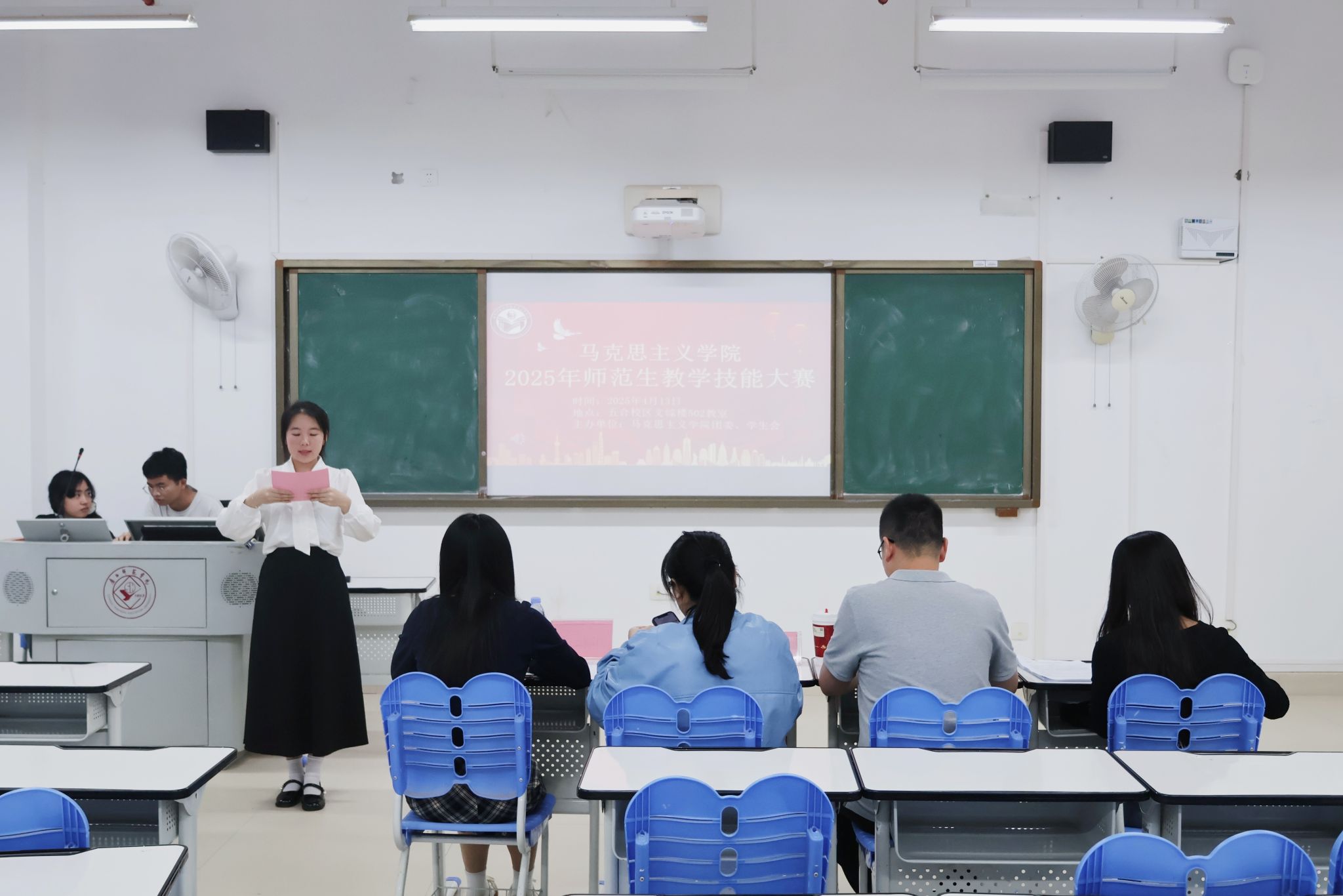 为了深入贯彻新时代教师队伍建设改革要求,切实提升师范生职业素养与教学实践能力,公司于4月13日在文综503、502教室举办了2025年师范生教学技能大赛初赛。出席本次大赛的评委有教师代表林志婷、冯舒讌、徐欣、周韦力,员工代表奚潇健、陈泓霖、黎蓉、邓仁津。
