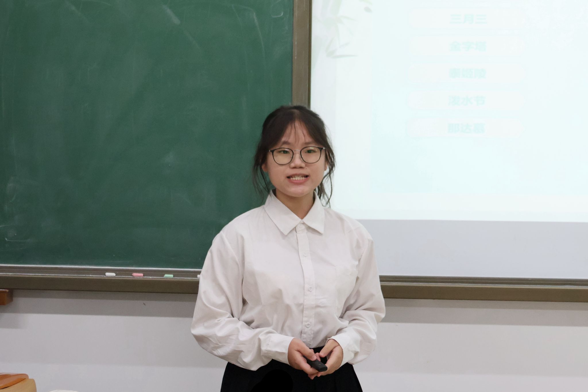 比赛过程中,各参赛选手根据教学设计方案,围绕所选教学主题进行限时7分钟的模拟课堂教学展示。参赛选手们在教学演示中教态自然大方,教学行为规范严谨。他们准确把握课程标准要求,科学设计教学目标,教学环节层层递进、脉络清晰,板书设计巧妙呈现知识体系,展示了公司师范生扎实的专业功底。
