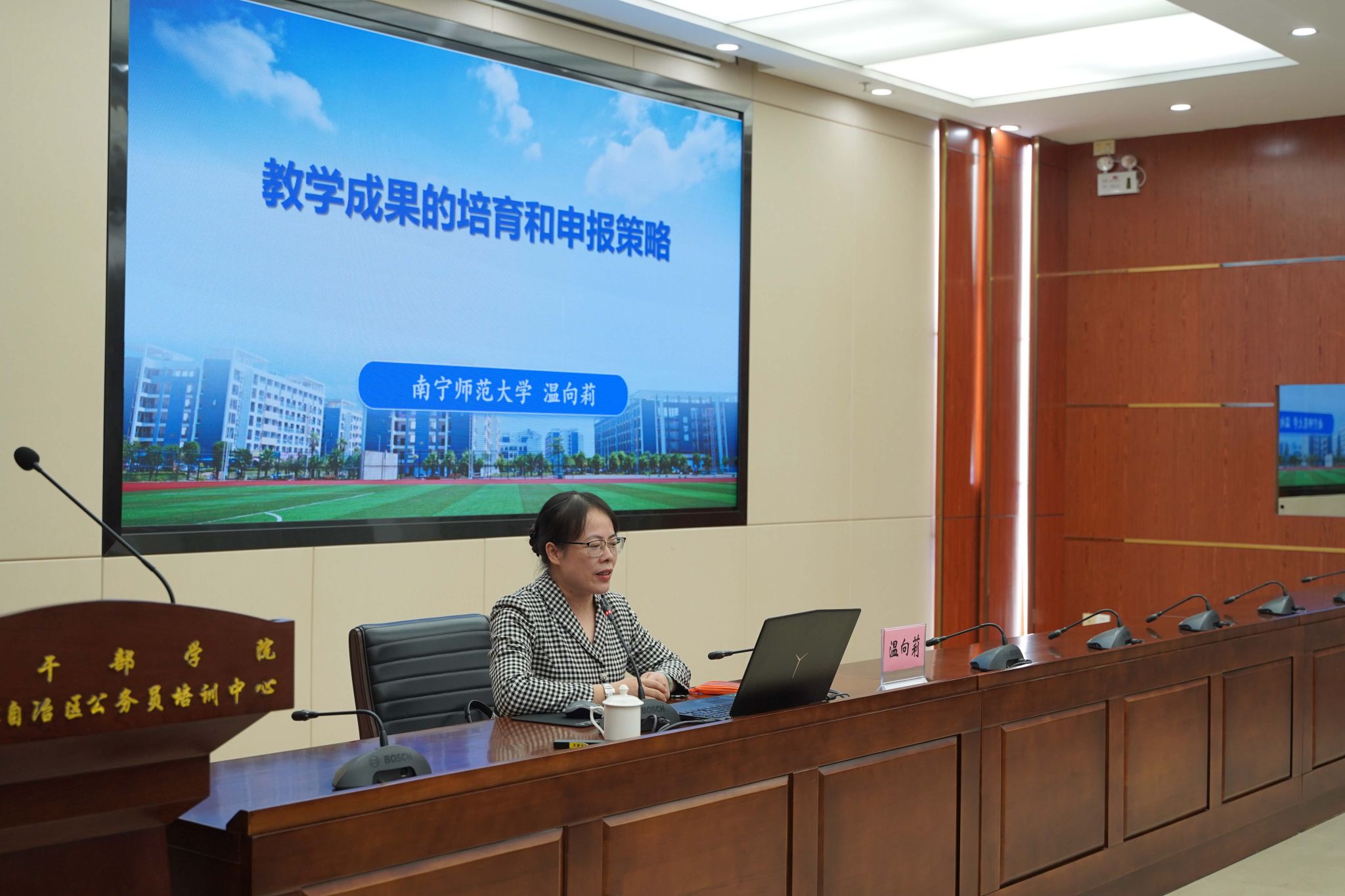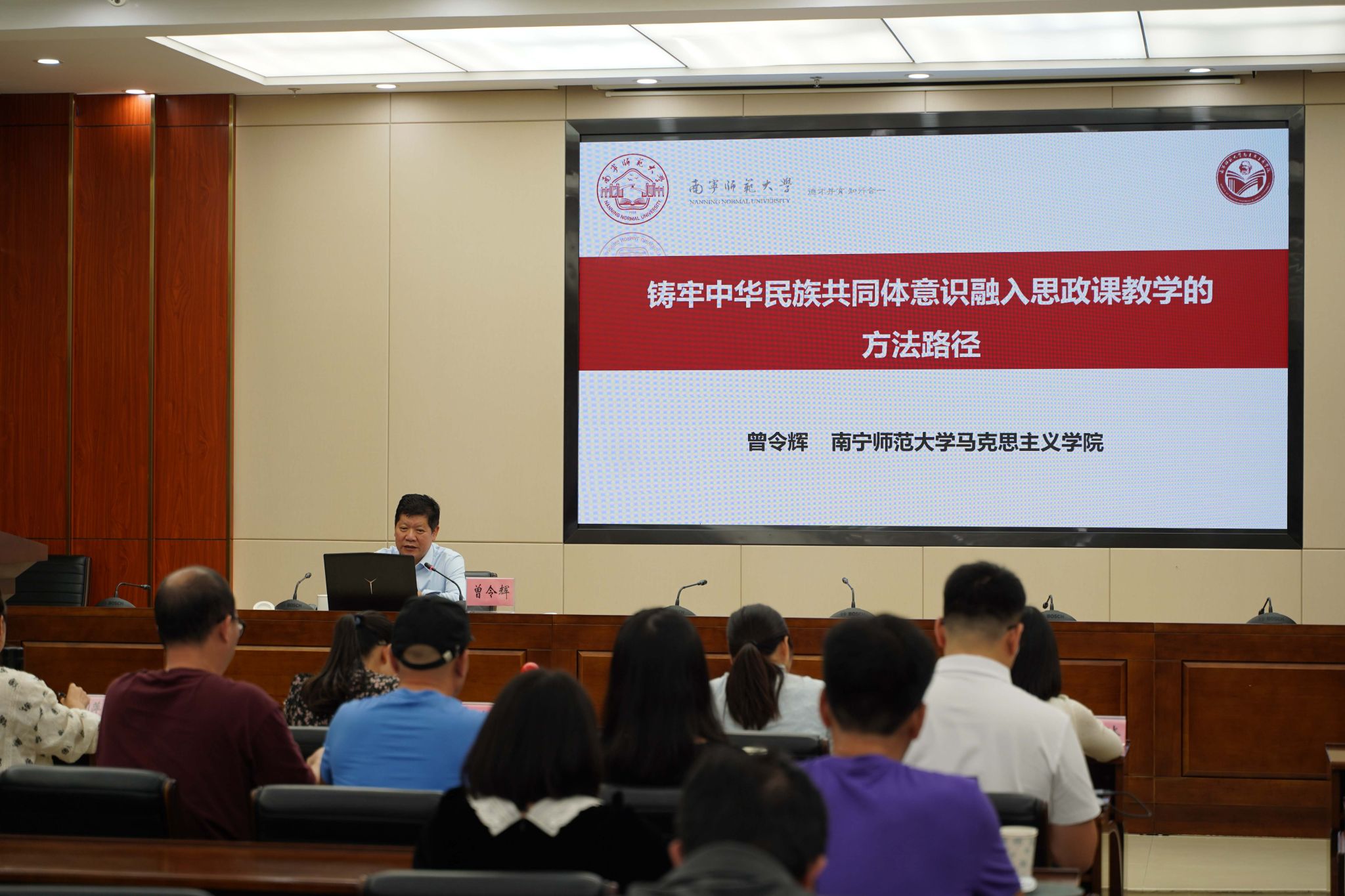 培训期间,曾令辉以《铸牢中华民族共同体意识融入思政课教学的方法路径》为题作第一专题辅导。他围绕铸牢中华民族共同体意识“为什么要融入、如何融入以及怎样融入思政课教学”这三大问题进行讲授。自治区政协经济委副主任杨丛以《广西经济社会发展形势》为题作第二专题辅导。他从学习领悟高质量发展的深刻内涵、广西推动高质量发展取得的成绩、面临的形势和重大举措四大方面进行讲授。谢丽丽以《思政课教学设计核心要素的解析与应用》为题作第三专题辅导。她围绕思政理论课好课标准、基本要求、要素分析、素材运用等方面作经验分享。太阳集团tyc33455教授、博士生导师温向莉以《教学成果的培育和申报策略》为题作第四专题辅导。她主要从了解教学成果和撰写教学成果申报书两大方面进行了详细的讲授与经验分享。在培训期间,学员们前往合浦汉代文化博物馆和金海湾红树林生态区开展“行走的思政课”现场教学,并围绕“党的二十届四中全会精神如何融入各门思政课教学”、“红树林生态区和汉文化博物馆如何作为教学资源在思政课教学中运用”、“如何在思政课中运用广西新时代伟大成就讲好思政课”、“高校思政课实践教学如何有效开展”等问题展开了研讨和交流。