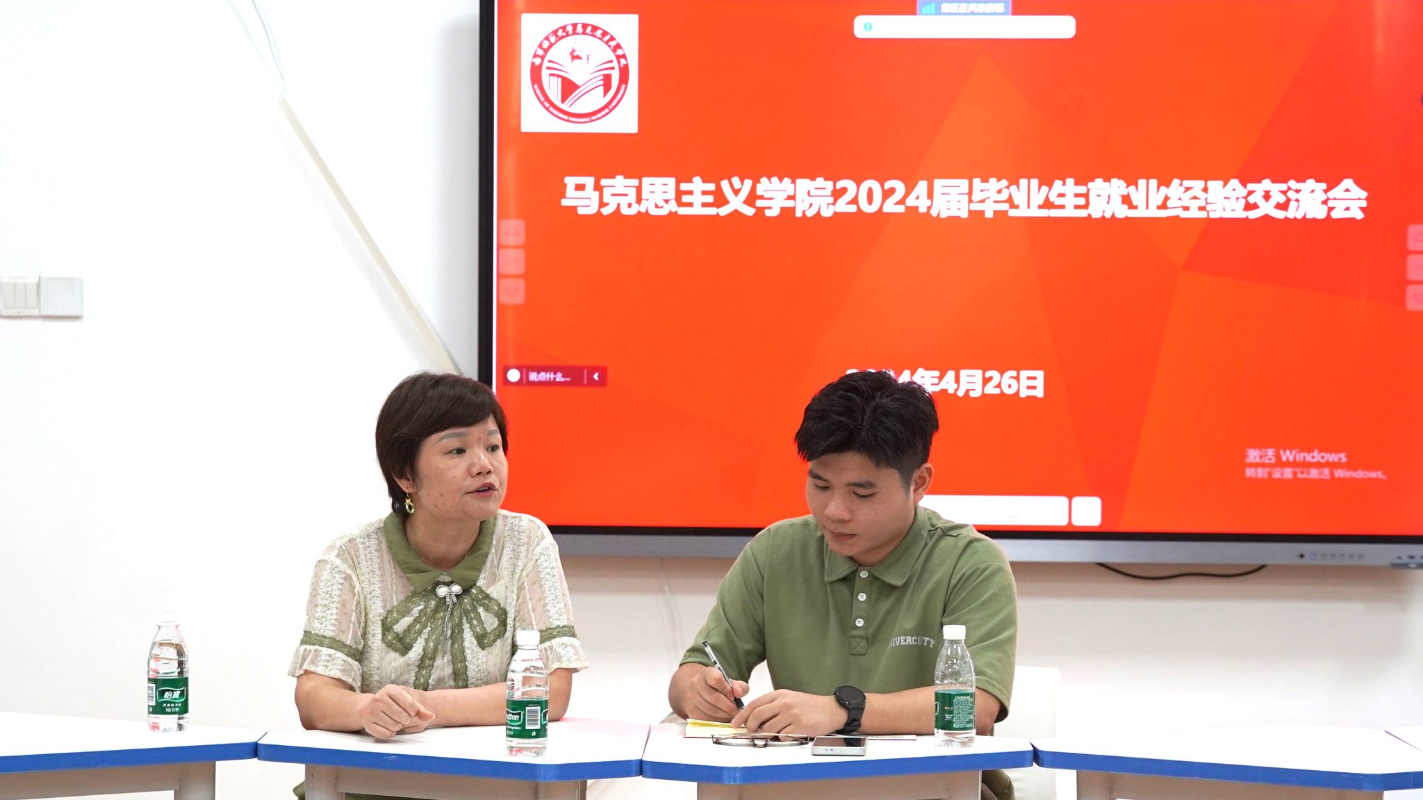 接着是已经签约的各位同学分别从高校辅导员、思政课教师、公务员、高校行政四类岗位,分享了自身求职经验和工作体会,强调了考试心态对考试结果的重要性,鼓励大家不骄不躁,保持自信,祝福即将毕业的同学都能如愿找到适合自己的工作。