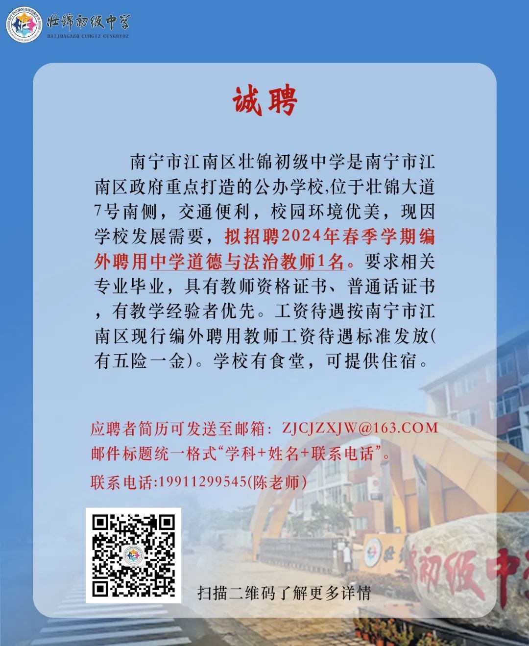 南宁市江南区壮锦初级中学2024年春季学期教师招聘公告 (qq.com)