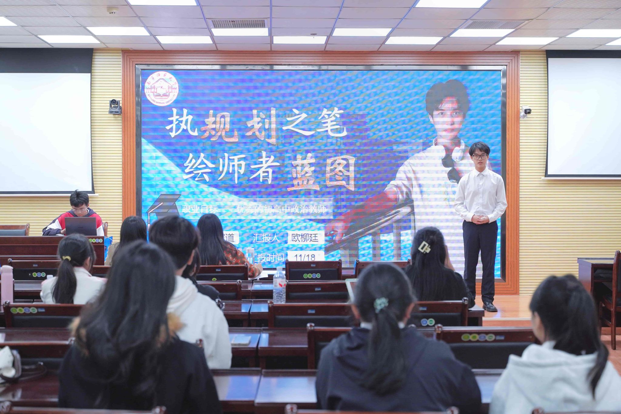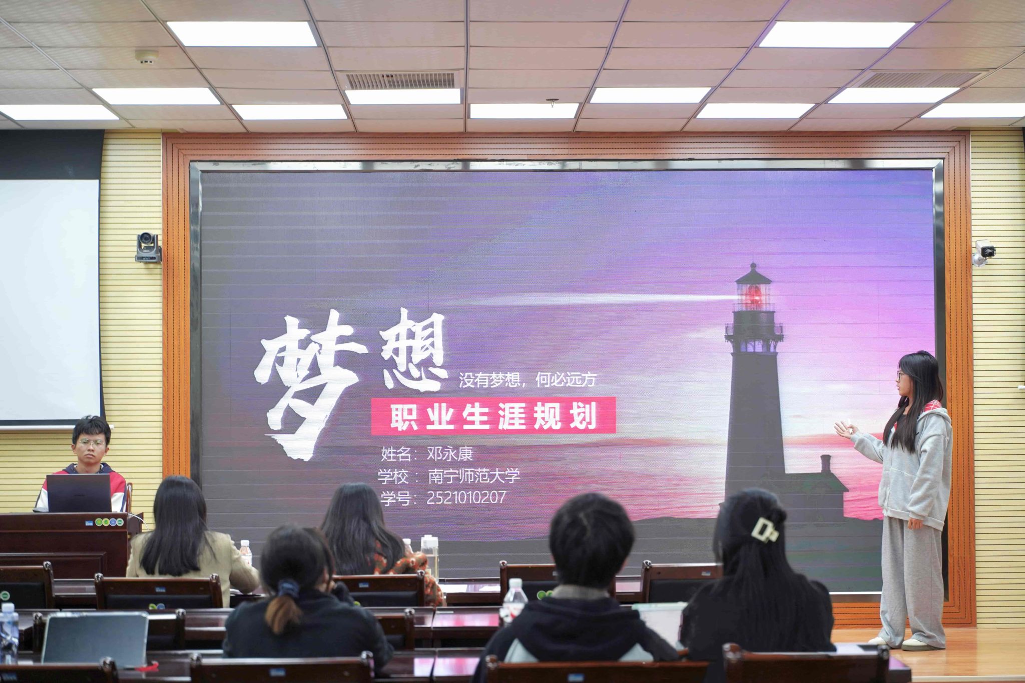 活动伊始,参赛选手依次登台,围绕自我分析、职业目标、实施路径等内容展开演讲,清晰的规划思路与饱满的青春热情,展现出新时代青年学子昂扬向上的精神风貌。接着,评委老师从内容逻辑、表达技巧、可行性等角度对选手表现进行细致点评,并给出针对性优化建议。