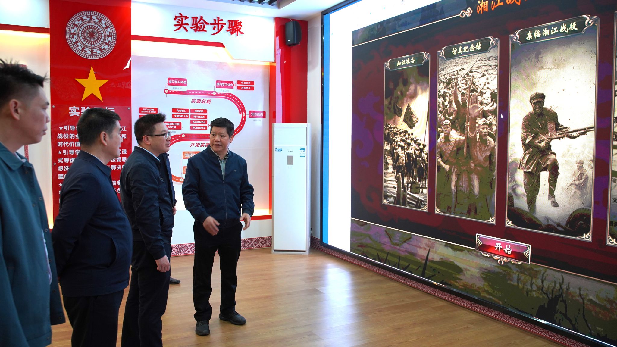 公司经理曾令辉陪同东兴市人民政府副市长张辉一行参观了公司党史育人画廊、马克思主义理论教育广场、湘江战役虚拟仿真实验中心、马克思主义经典著作阅读室、科学社会主义发展史教育馆、新媒体实验室等场所和设施。