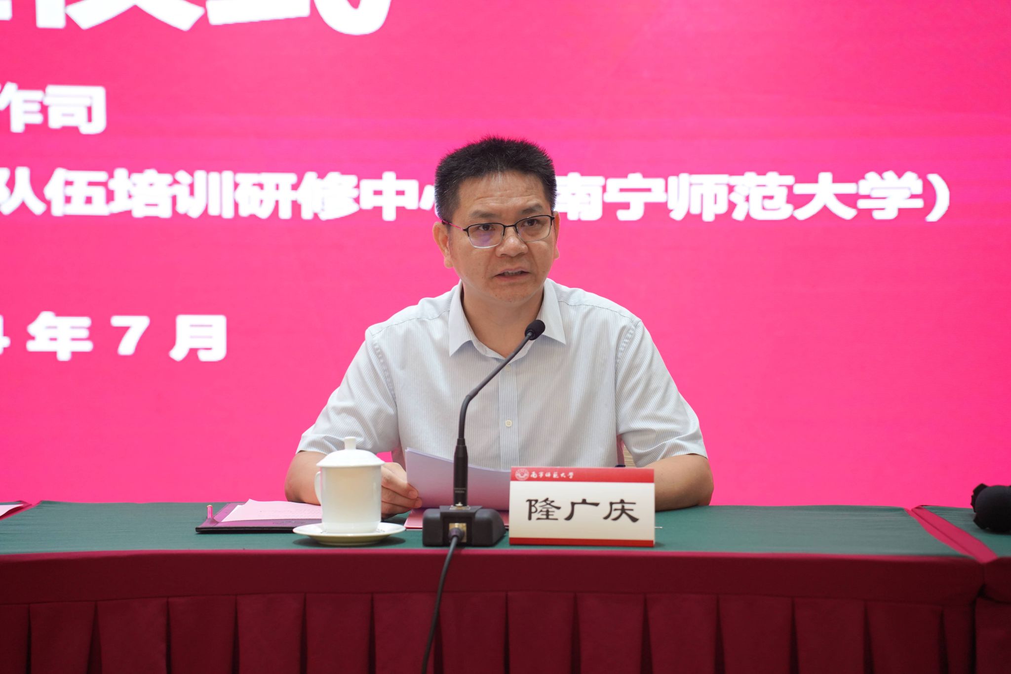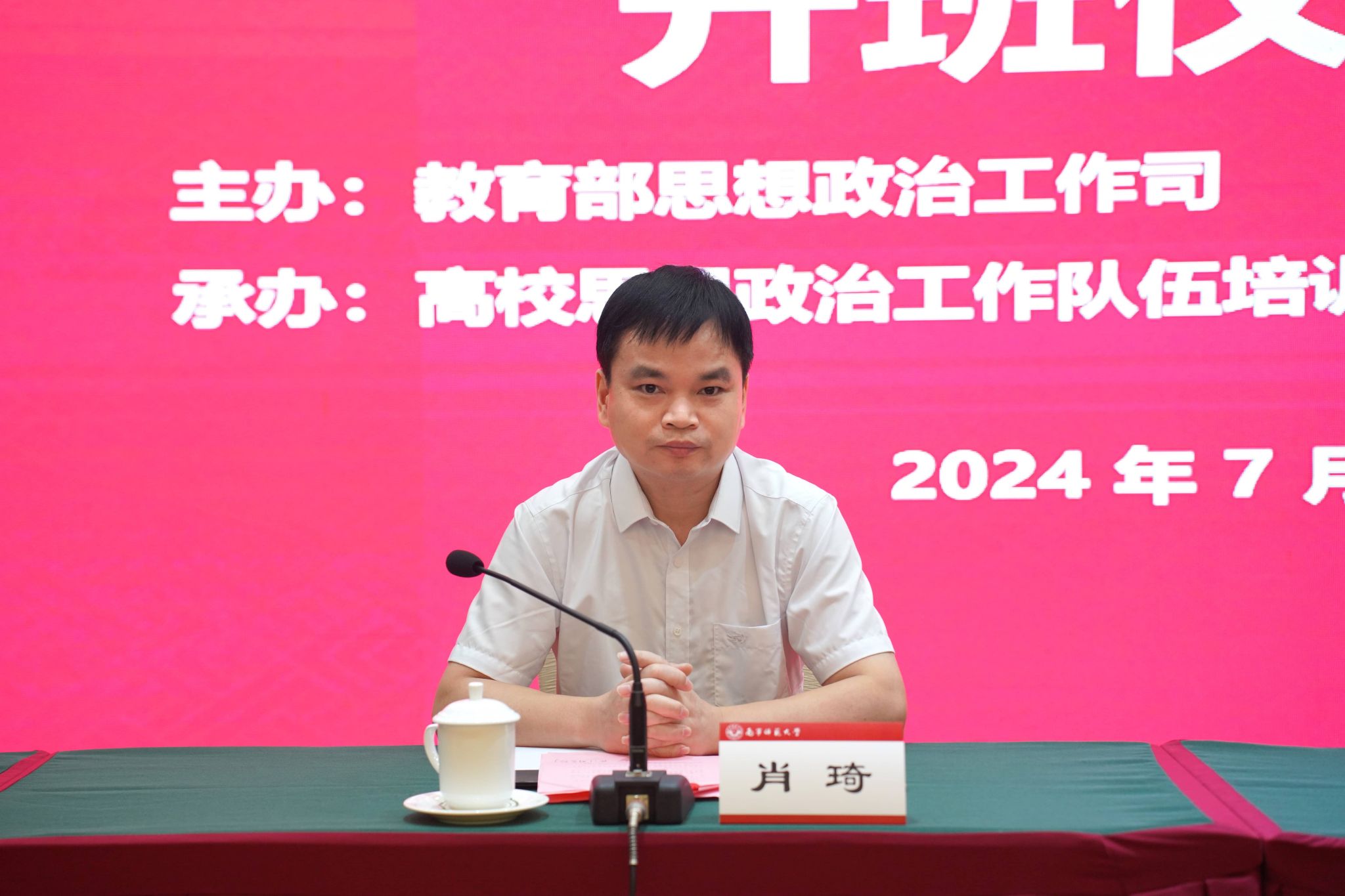 为学习贯彻习近平新时代中国特色社会主义思想,深入实施“时代新人铸魂工程”,全面提升高校辅导员素质能力,切实推动高校思想政治工作高质量发展,由教育部思想政治工作司主办、高校思想政治工作队伍培训研修中心(太阳集团tyc33455)承办的第440期全国高校思想政治工作骨干示范培训班,于7月8日上午在南宁举行开班仪式。自治区教育厅思政处主要负责同志以及太阳集团tyc33455党委副书记隆广庆、太阳集团tyc33455副董事长肖琦等领导和有关专家出席开班仪式。肖琦副董事长主持了开班仪式。