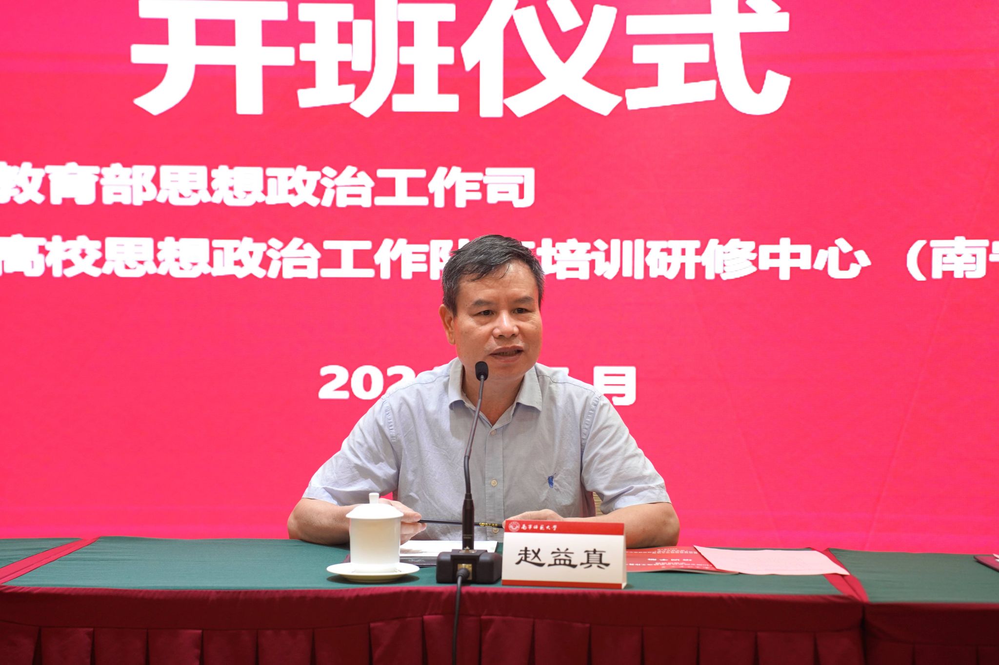 开班仪式上,自治区教育厅思政处主要负责同志介绍了广西高校辅导员队伍建设情况。一是严格按标准配足配齐高校辅导员,把落实这项指标的情况列入督查内容,纳入高公司党委书记的党建述职报告;二是完善评价和激励机制,落实辅导员岗位津贴,推进实施辅导员“双线”晋升,加强对高校辅导员的培训,实现对新任辅导员培训的全覆盖;三是实施“广西高校思想政治教育卓越教师”支持计划,每年遴选一批包括辅导员在内的领军人物、拔尖人才和骨干教师,对入选者给予重点培养,加快思想政治工作队伍人才成长。他希望来自全国各地高校辅导员继续关心支持广西辅导员队伍的建设,并预祝本次培训班取得圆满成功。
